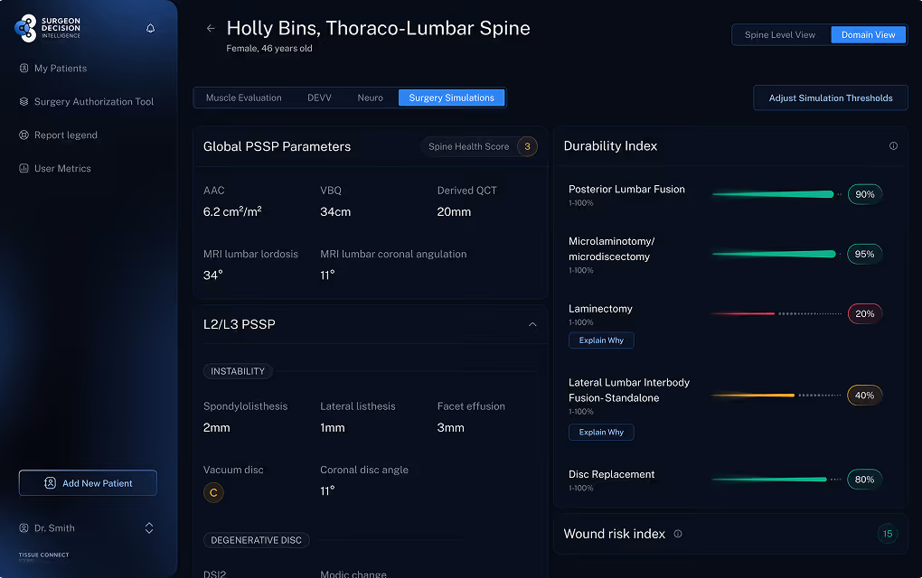 We give you the structural and biologic intelligence to help you pick the right surgery for the right patient without replacing your clinical judgement.